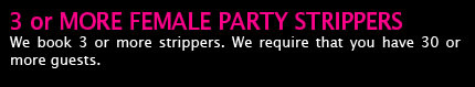 PARTY CONDUCT FOR PARTY GUESTS DISCLAIMER: All customers who book with us are to maintain a safe environment at all times for our dancers. At any time that the dancers feel harrased or threatened. They have the right to leave without any money for fees returned.
